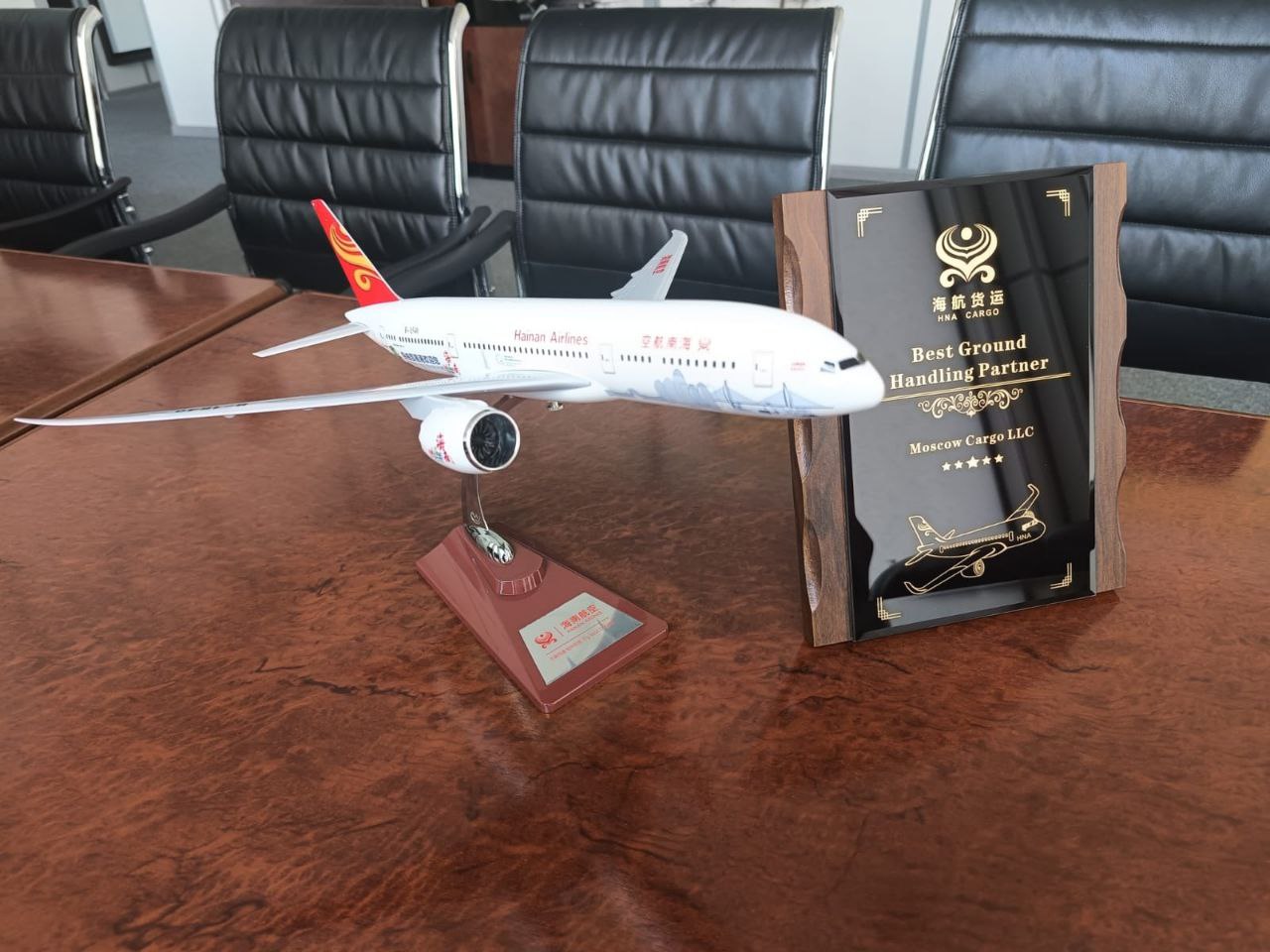 Почетную награду из рук директора московского представительства г-на Чжан Те принимал первый заместитель генерального директора по производству ООО «Москва Карго» Михаил Михайлович Чувилькин, выразивший от лица коллектива признательность за высокую оценку деятельности компании: «Мы благодарим авиакомпанию Hainan Airlines за доверие и надеемся на дальнейшее укрепление сложившихся добропартнерских отношений. Нам особенно приятно получить эту награду на этапе перезаключения Договора о сотрудничестве. С одной стороны, она служит лучшим подтверждением наших компетенций за три года совместной работы, с другой – символизирует начало нового этапа нашего взаимодействия».